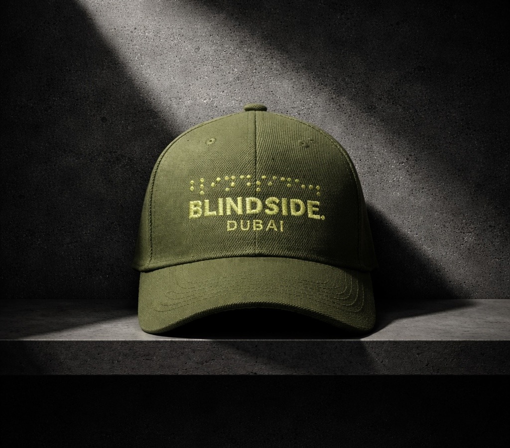 The BLINDSIDE cap offering exceptional comfort and breathable wear for everyday use. It features an embossed embroidery design, creating a refined raised effect that adds depth, texture, and a distinctive premium finish. Every detail is carefully executed to reflect the bold and mysterious identity of the brand.